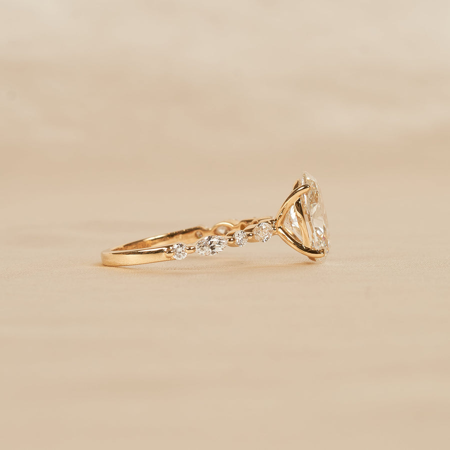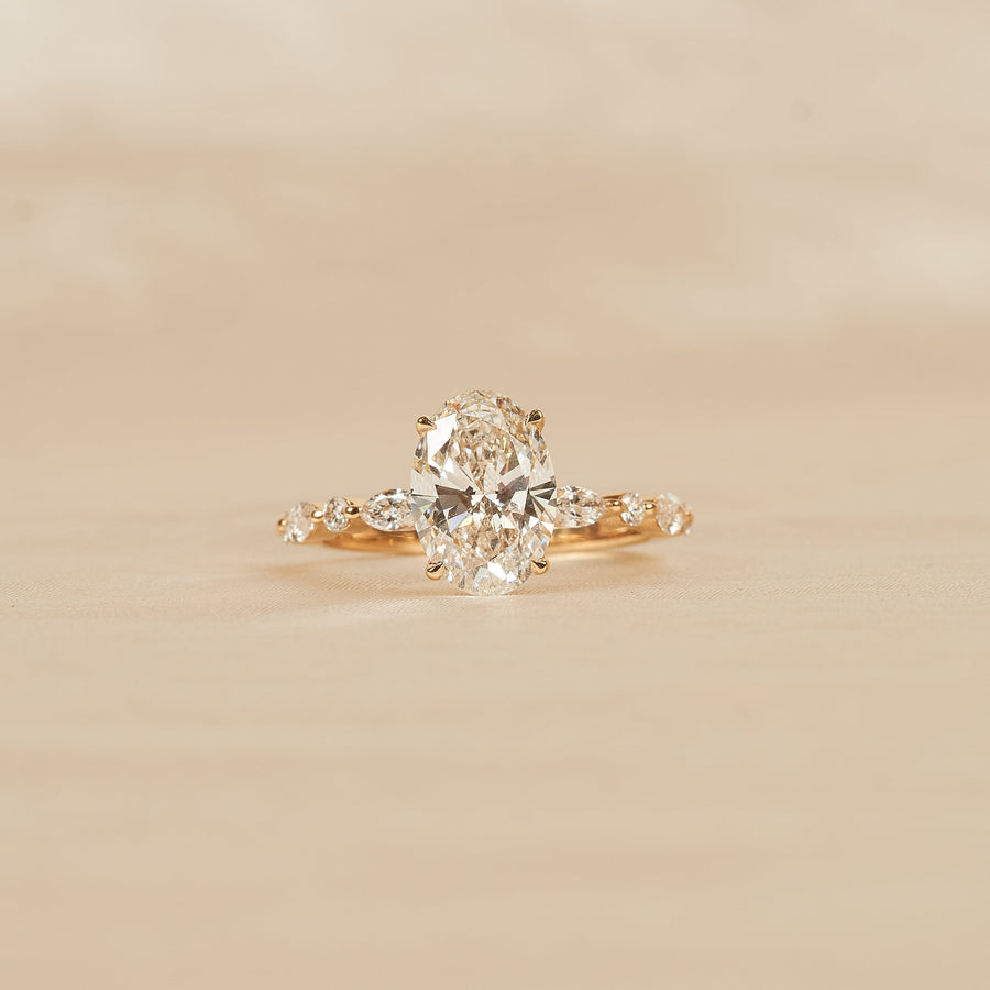 Elena - Oval Solitair Lab Grown Diamond Ring with Marquise Round Diamond Band