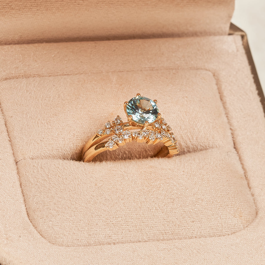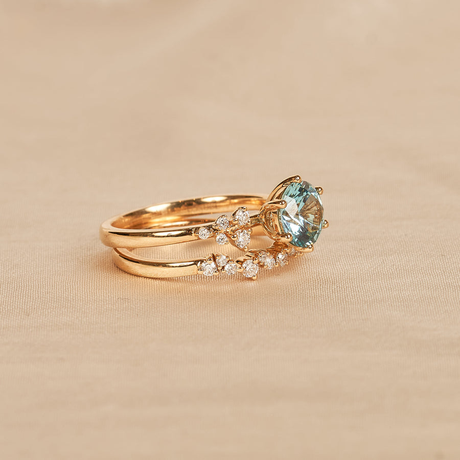 Elena - Round Solitair Lab Grown Diamond Ring with Marquise Round Diamond Band