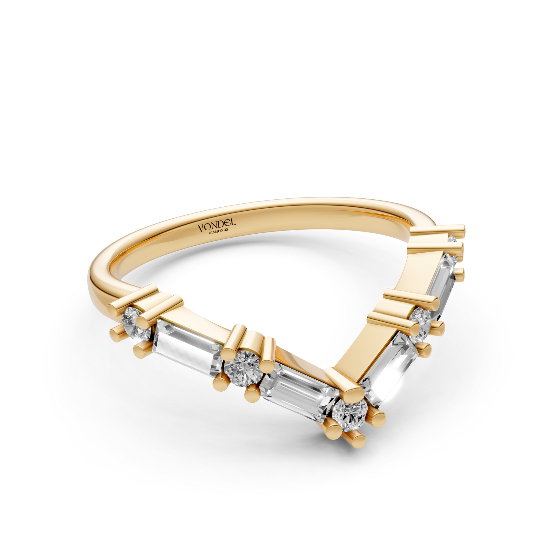 V-vormige Rijring met Baguette en Rond Briljant Geslepen Diamanten - 0,60 ct