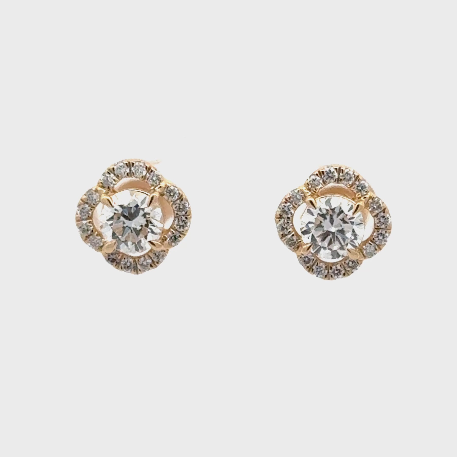 Rond Briljant Flower Stud Oorbellen - 18K Geelgoud - 1,51 ct