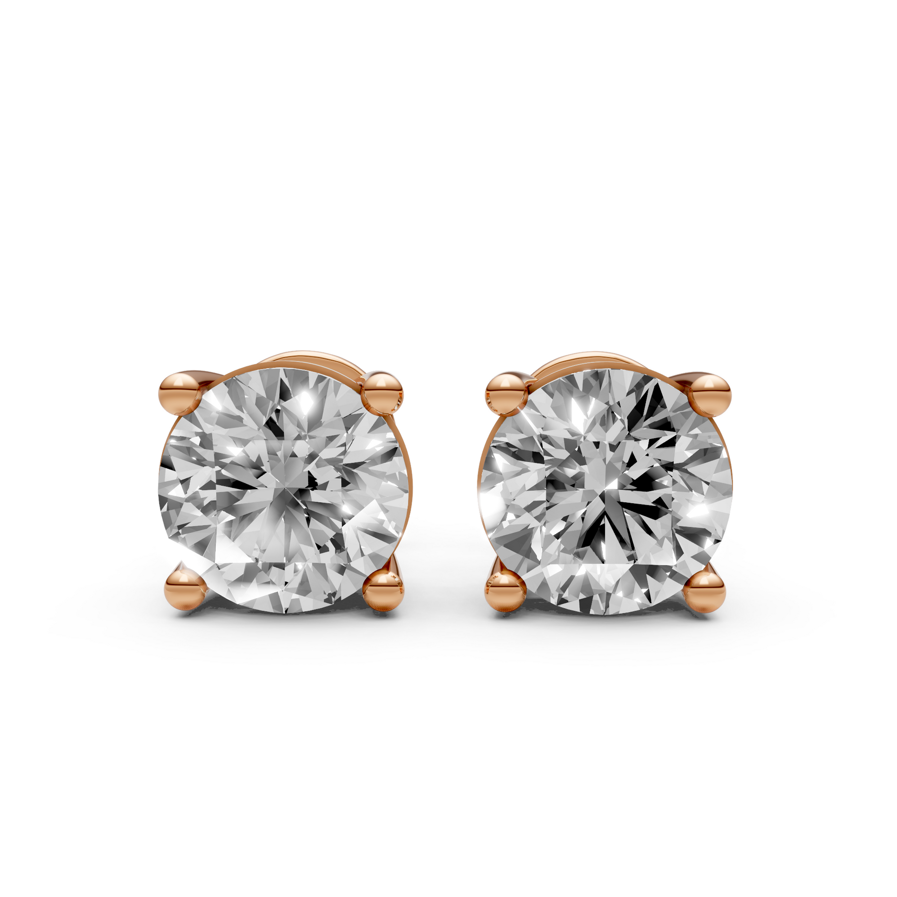 Rond Briljant Stud Oorbellen, Basketzetting - 18K Rosegoud - 3,16 ct