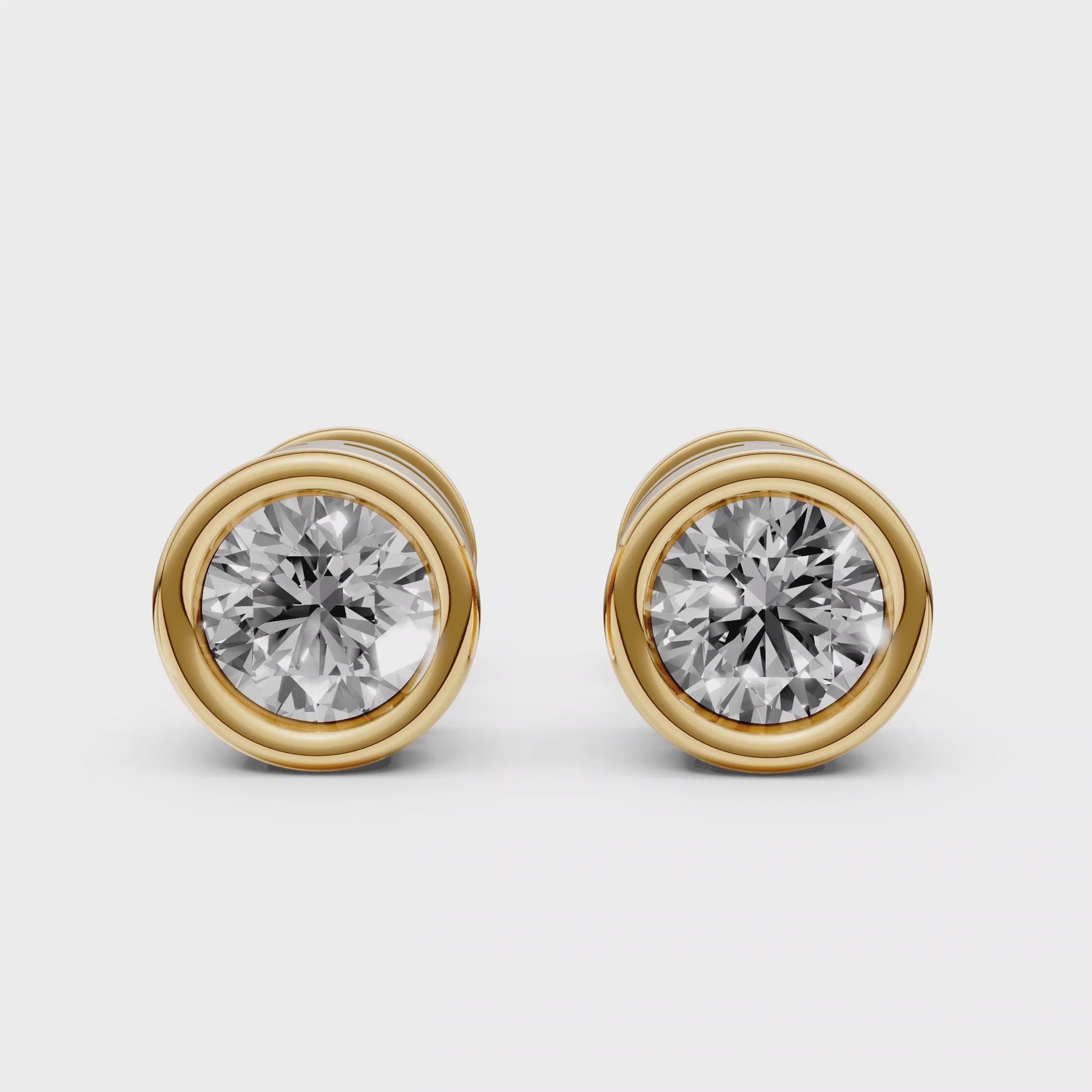 Rond Briljant Bezel Stud Oorbellen - 18K Geelgoud - 1,07 ct