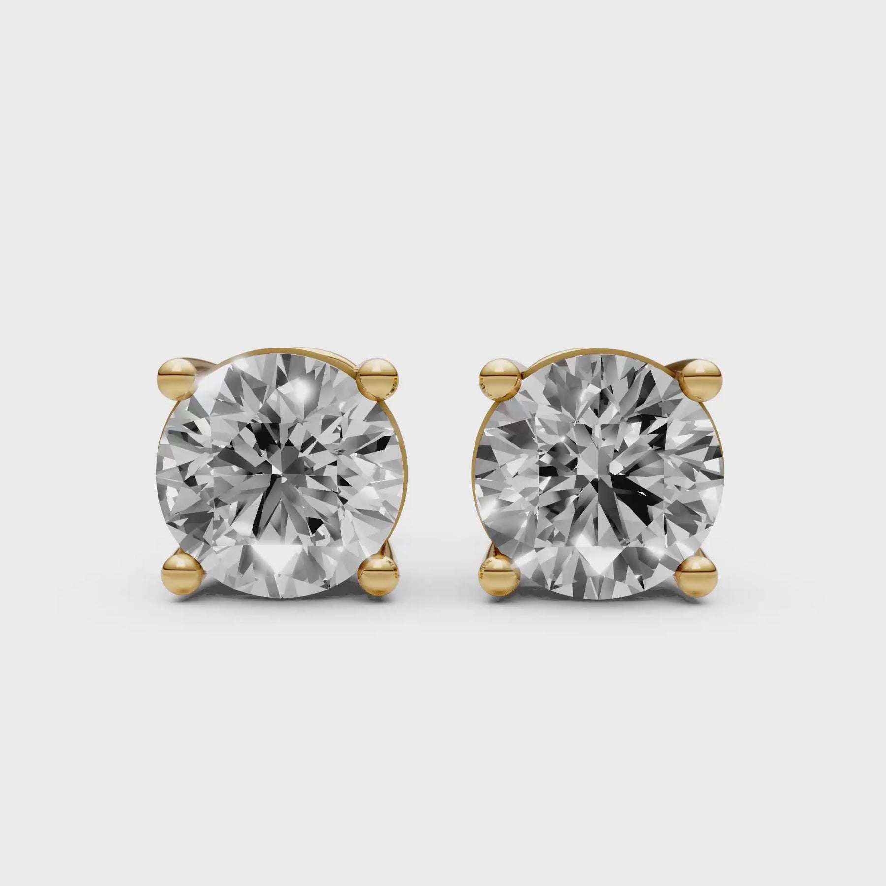 Rond Briljant Stud Oorbellen, Basketzetting Met Schroefsluiting - 18K Geelgoud - 4,06 ct