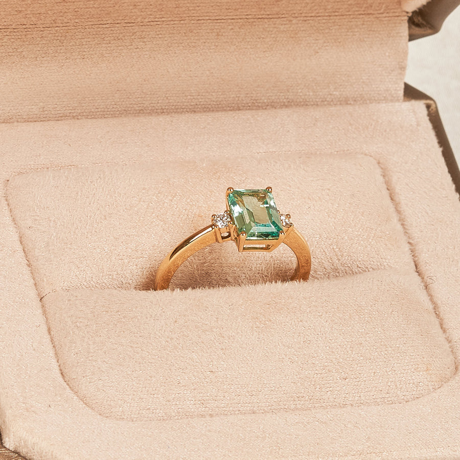 Lisa - Emerald Lab Grown Diamond Ring Solitair with Hidden Halo