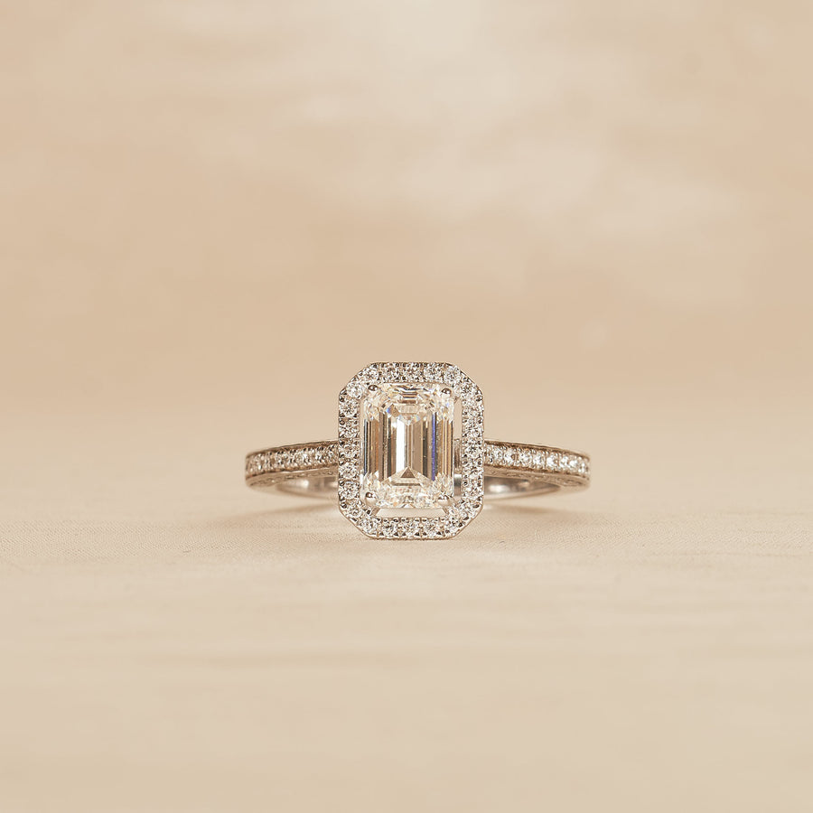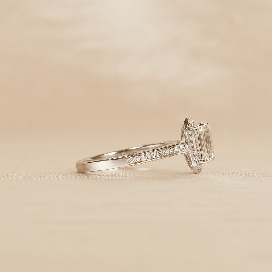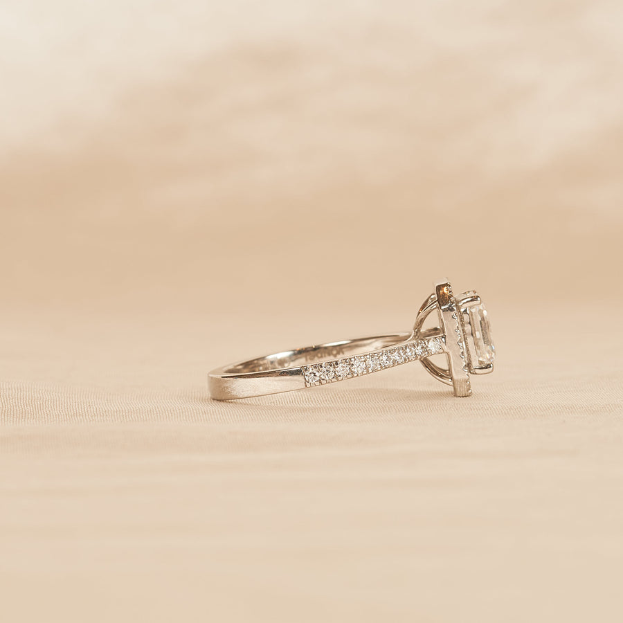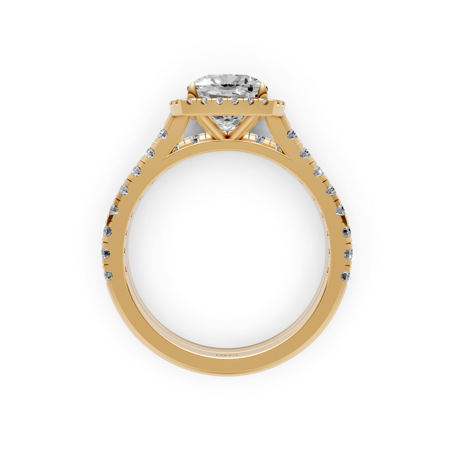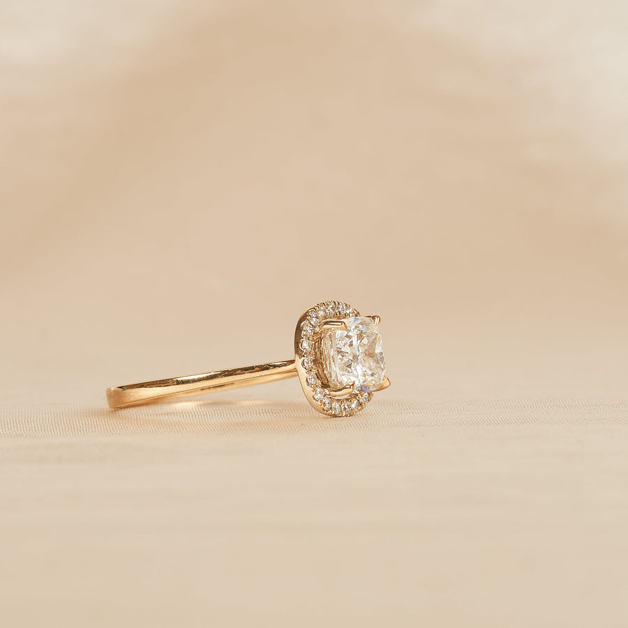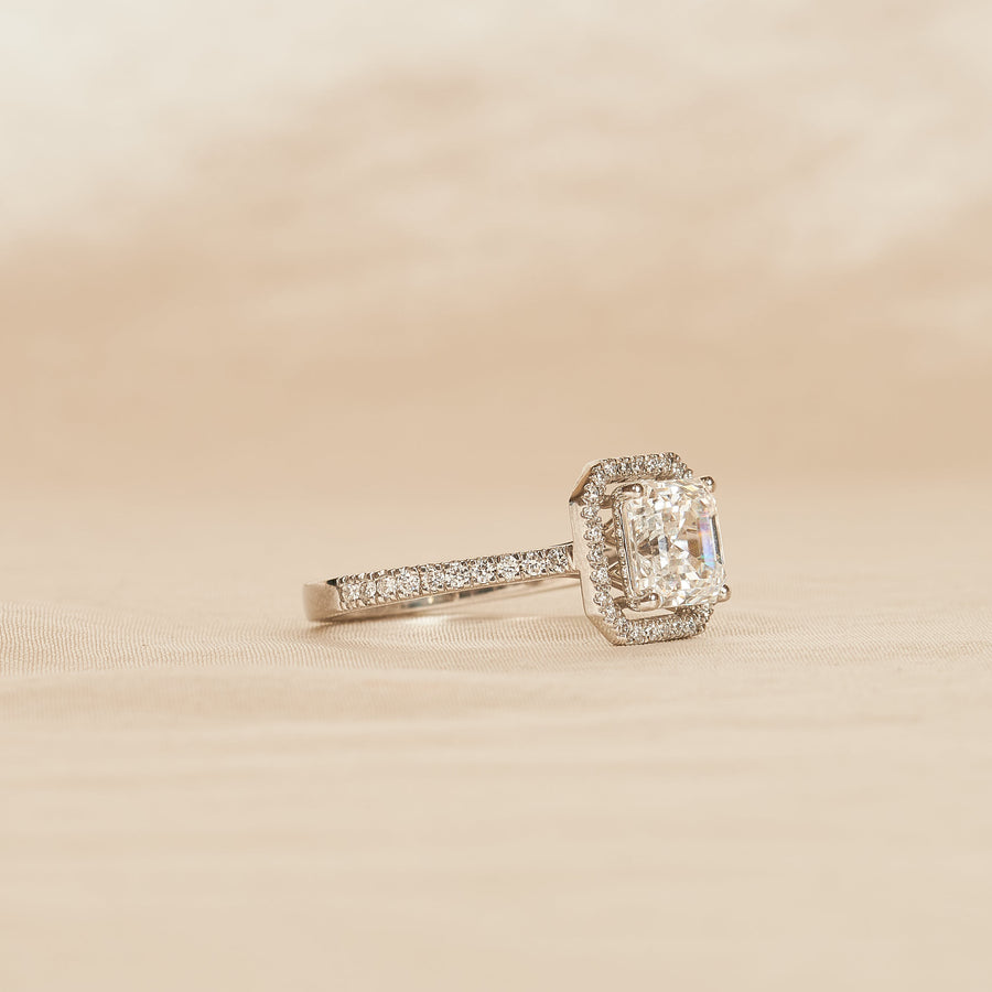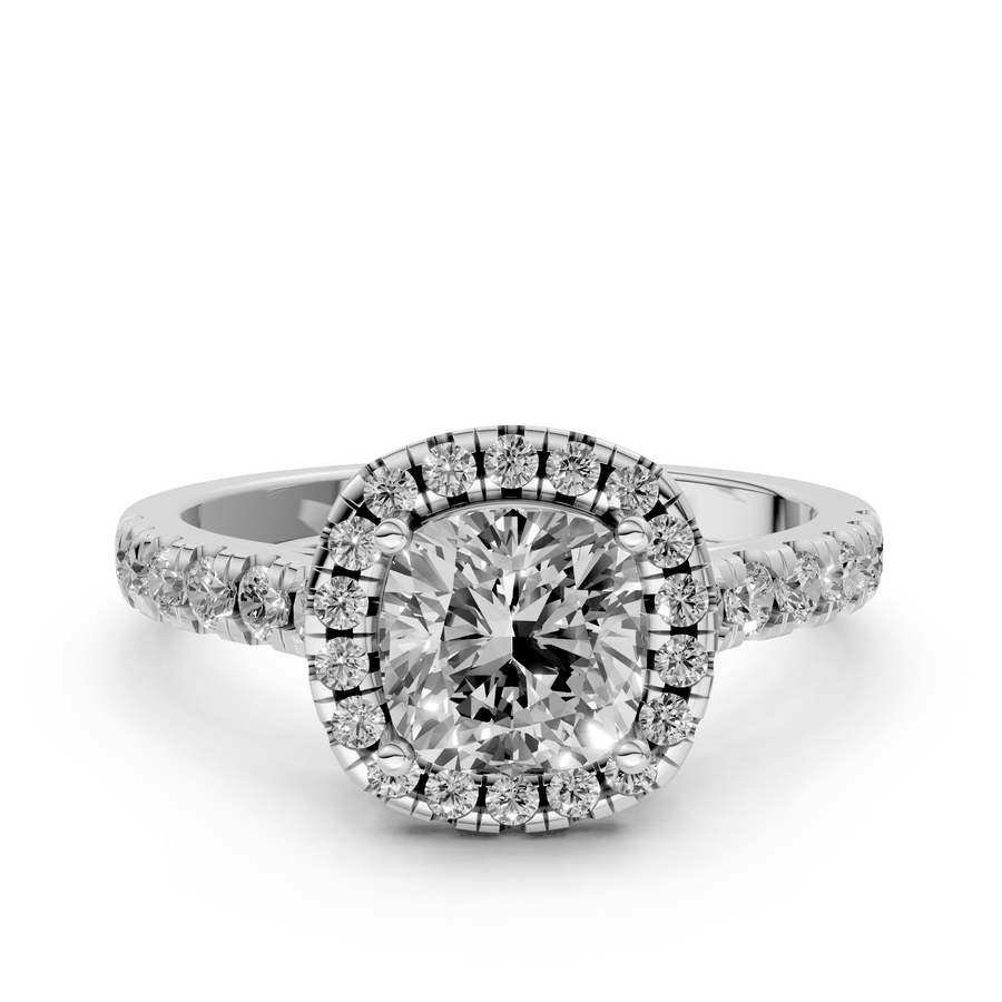 Rosie - Cushion Halo Lab Grown Diamond Ring with Pave Band