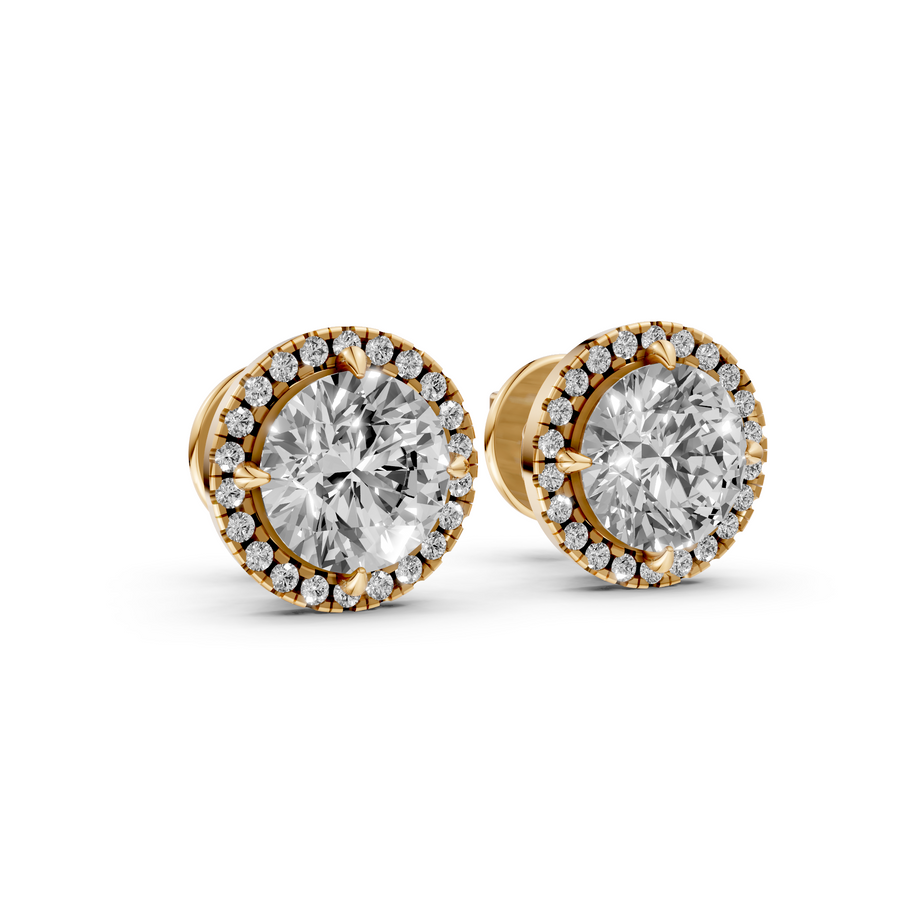 Bibi - In Stock - Round Brilliant Halo Lab Grown Diamond Stud Earrings