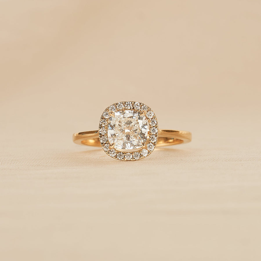 Veronica - In Stock - Cushion Halo Lab Grown Diamond Ring - 18K Yellow Gold - 1,70 ct