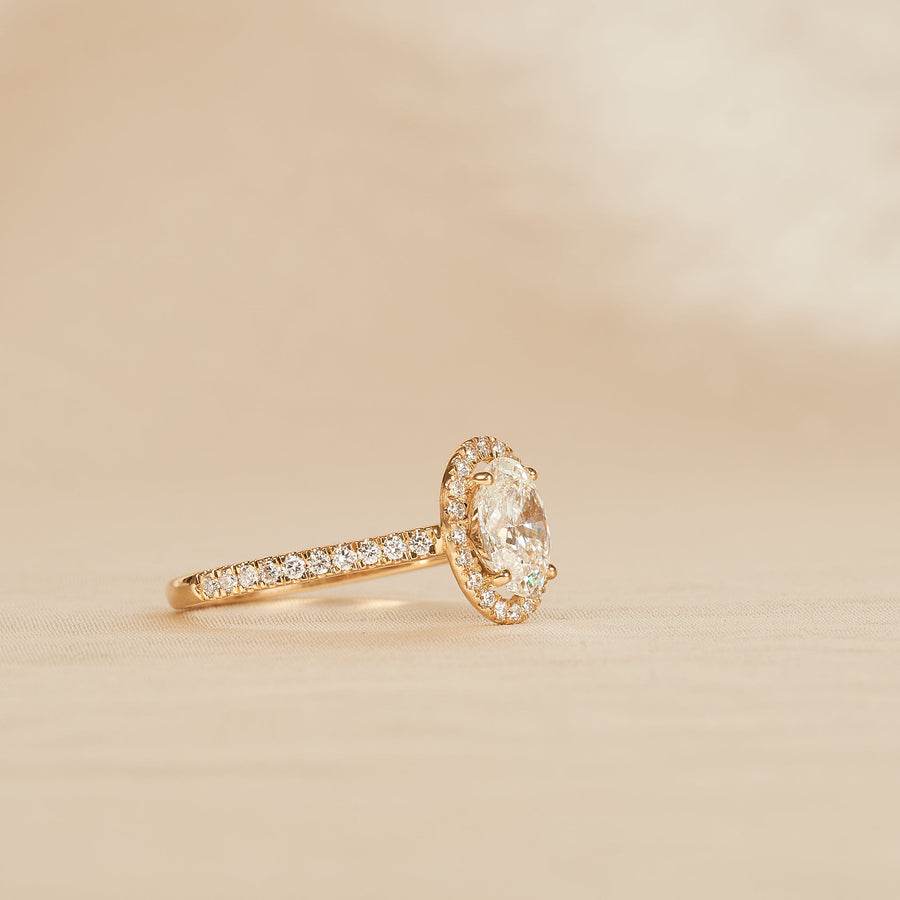 Rosie - Oval Halo Lab Grown Diamond Ring with Pave Band
