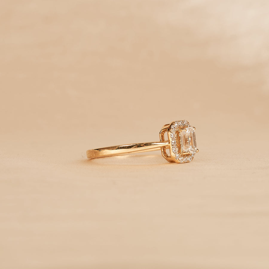 Cecilia - In Stock - Emerald Halo Lab Grown Diamond Ring - 18K Yellow Gold - 0,56 ct