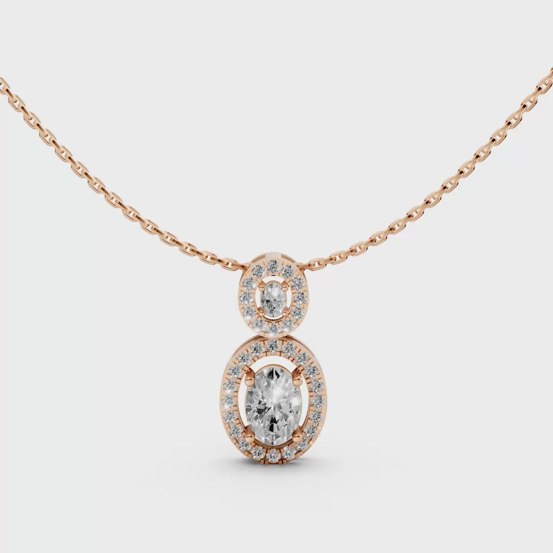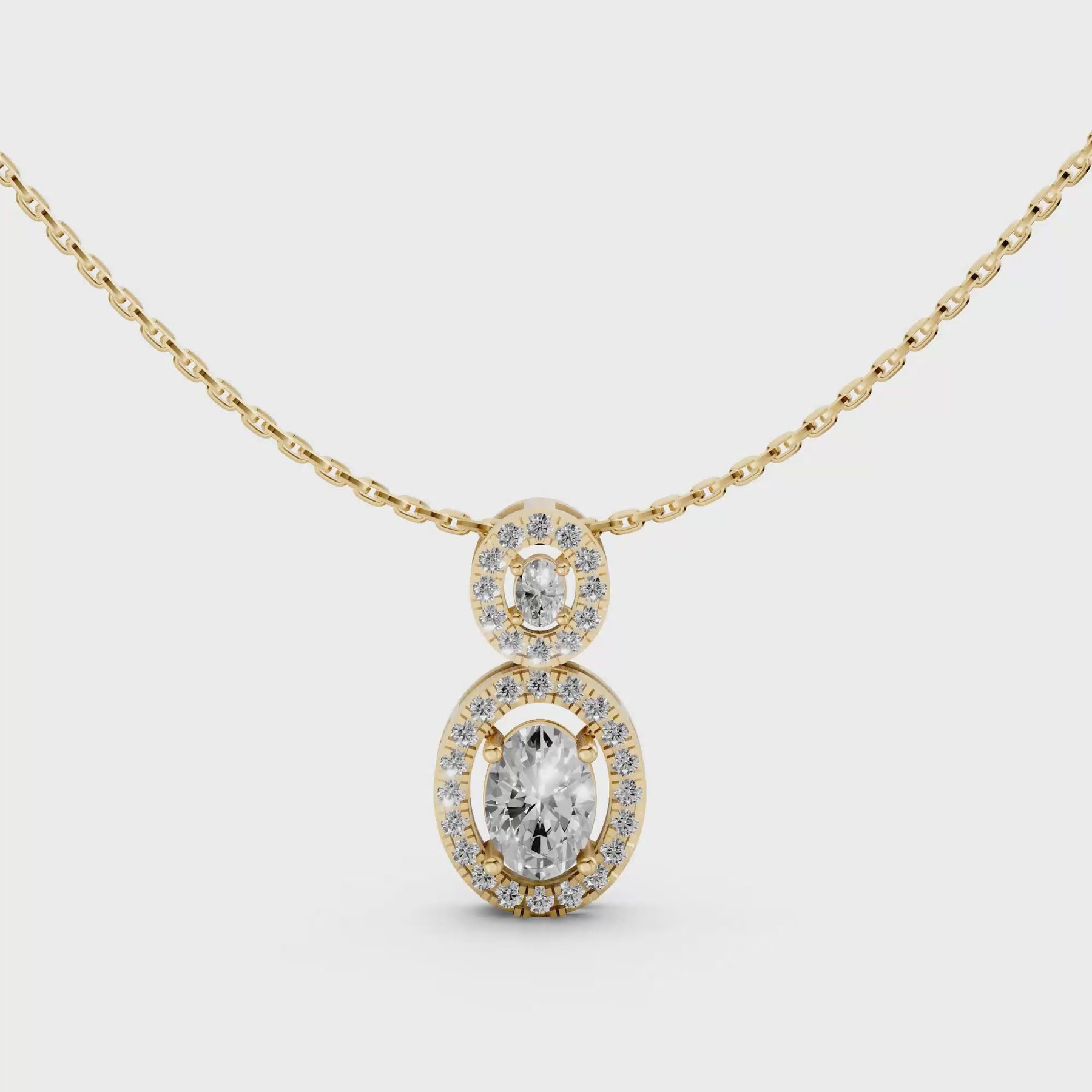 Double Oval Halo Pendant Necklace