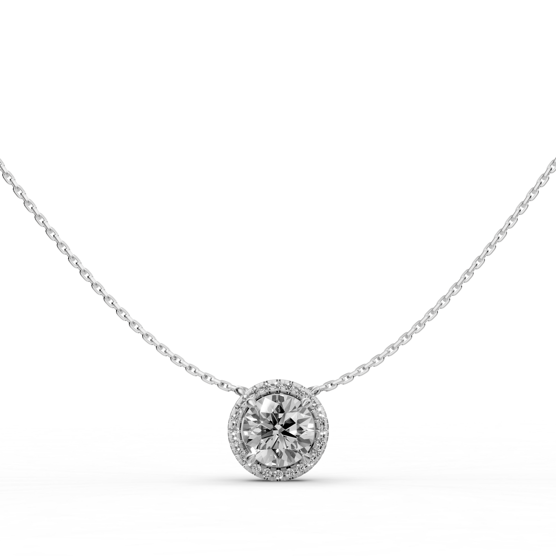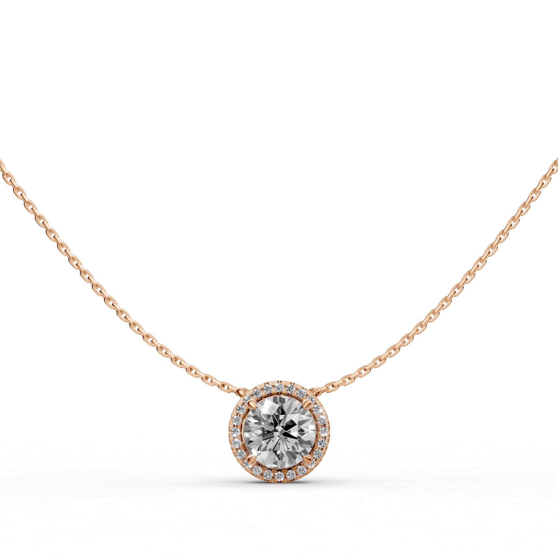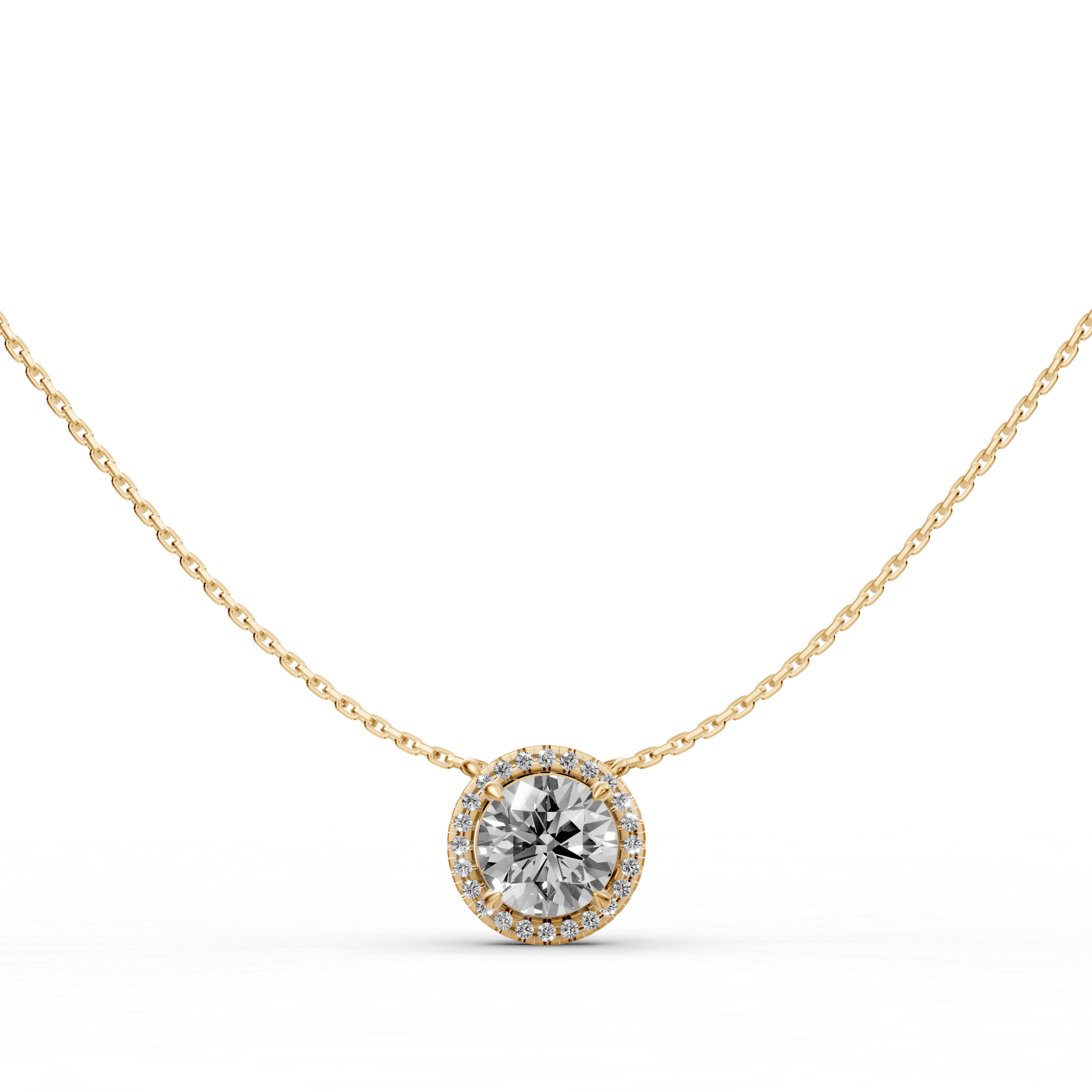 Rond Briljant Halo Pendant Collier - 18K Goud