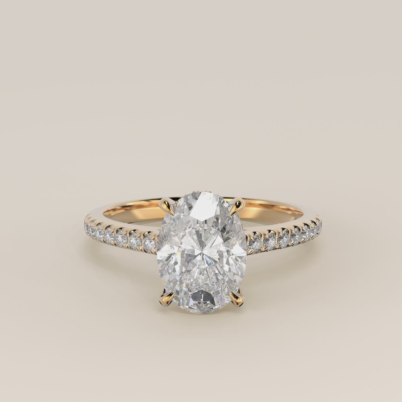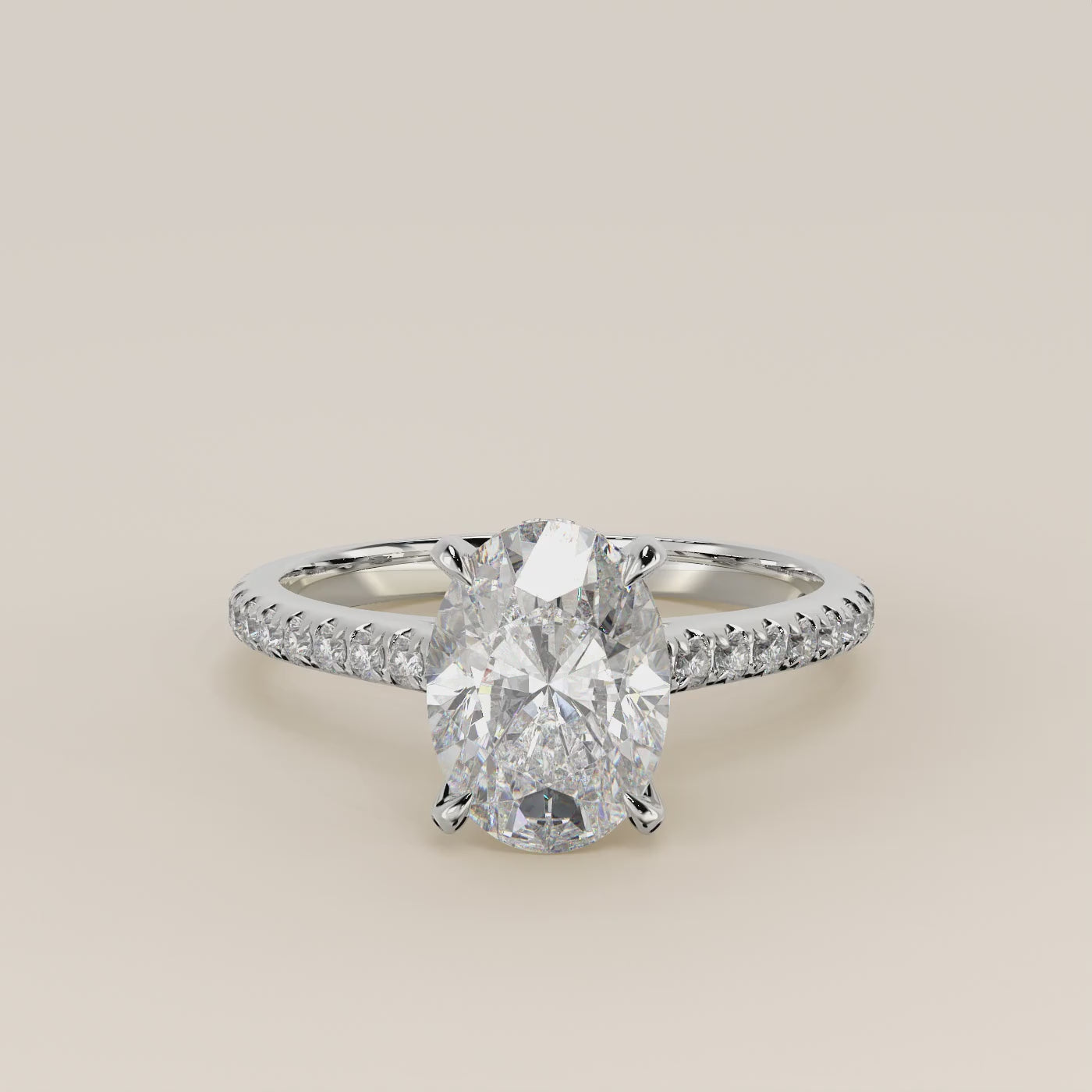 Lara - Oval Solitair Lab Grown Diamond Ring with Cathedral Setting, Pave Band and Hidden Halo