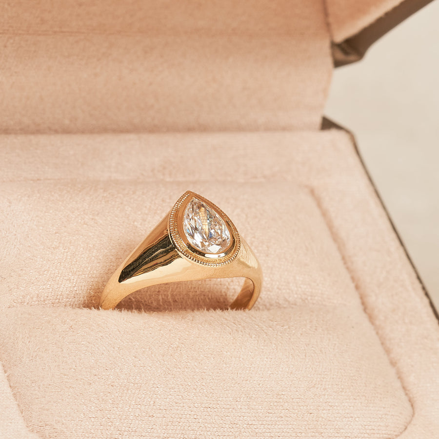 Charlotte - In Stock - Signet Lab Grown Diamond Ring Pear - 14K Gold - 1 ct