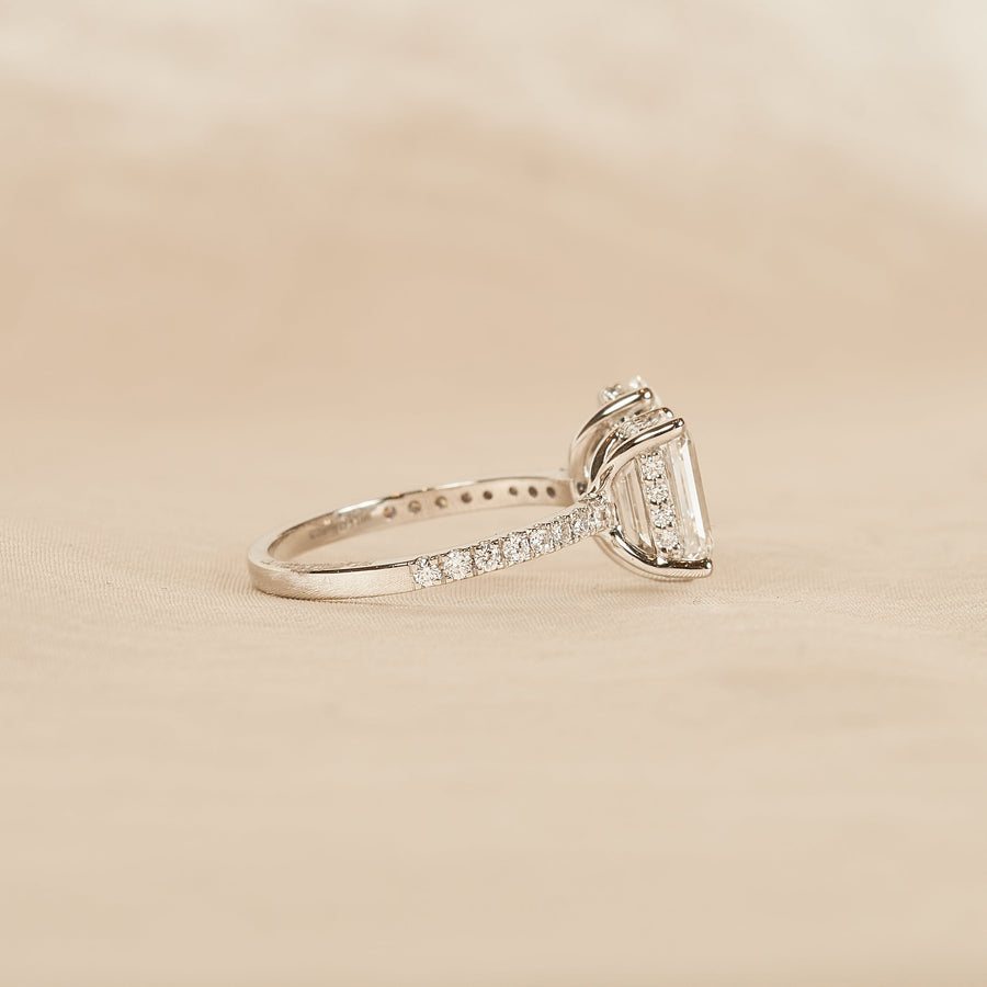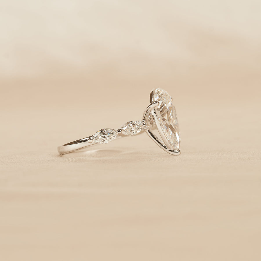 Sylvie - Pear Solitair Lab Grown Diamond Ring with Hidden Halo and Pave Band