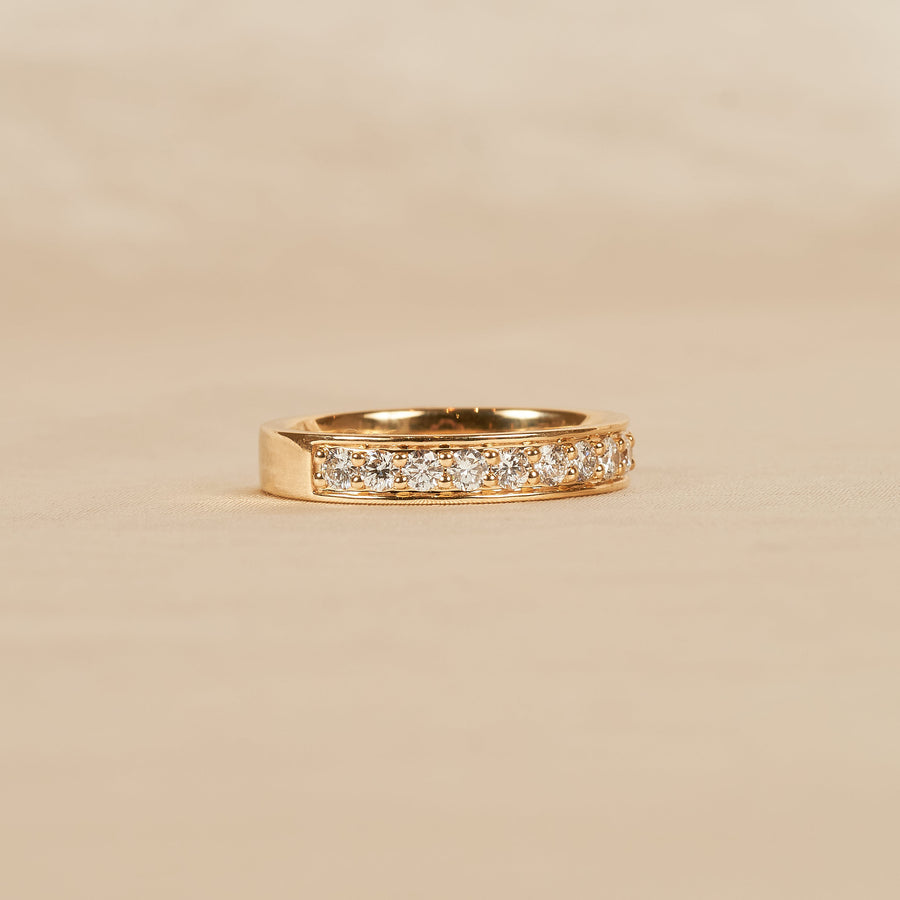 Hazel - In Stock - Wide Lab Grown Diamond Ring Half Pave Set - 18K Gold - 0,20 ct