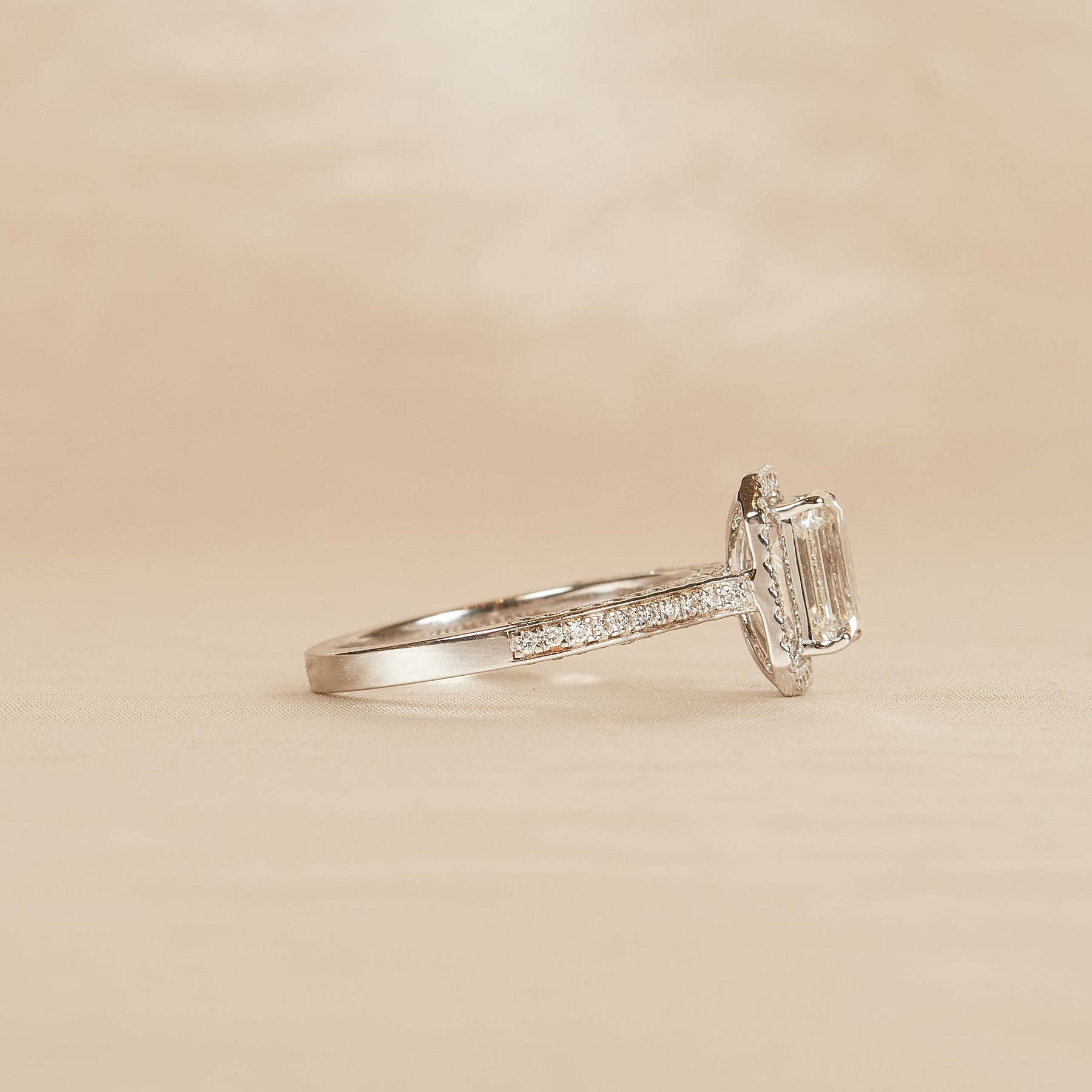 Emerald Halo Ring met 3 Zijden Pave Gezette Band - 18K Witgoud - 2,07 ct