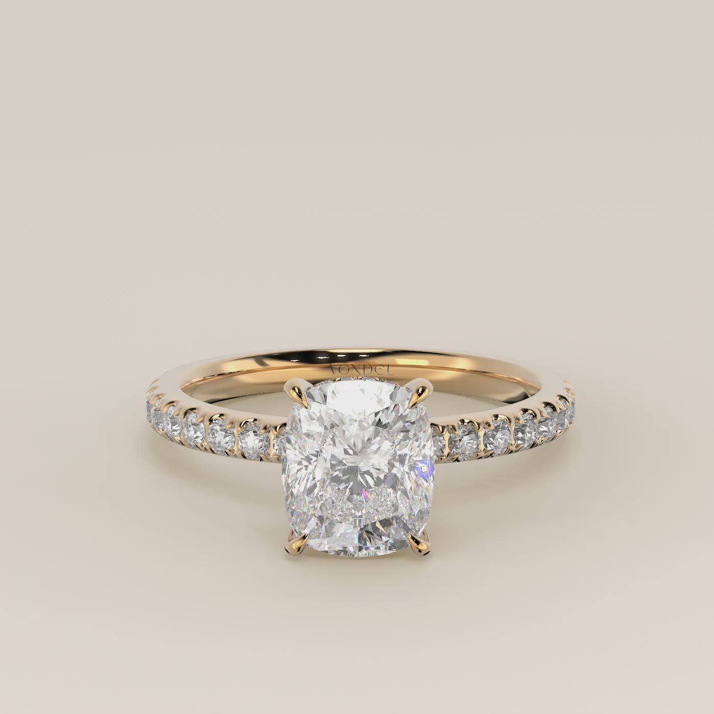 Sylvie – Elongated Cushion solitair lab grown diamond ring with hidden halo and pavé band