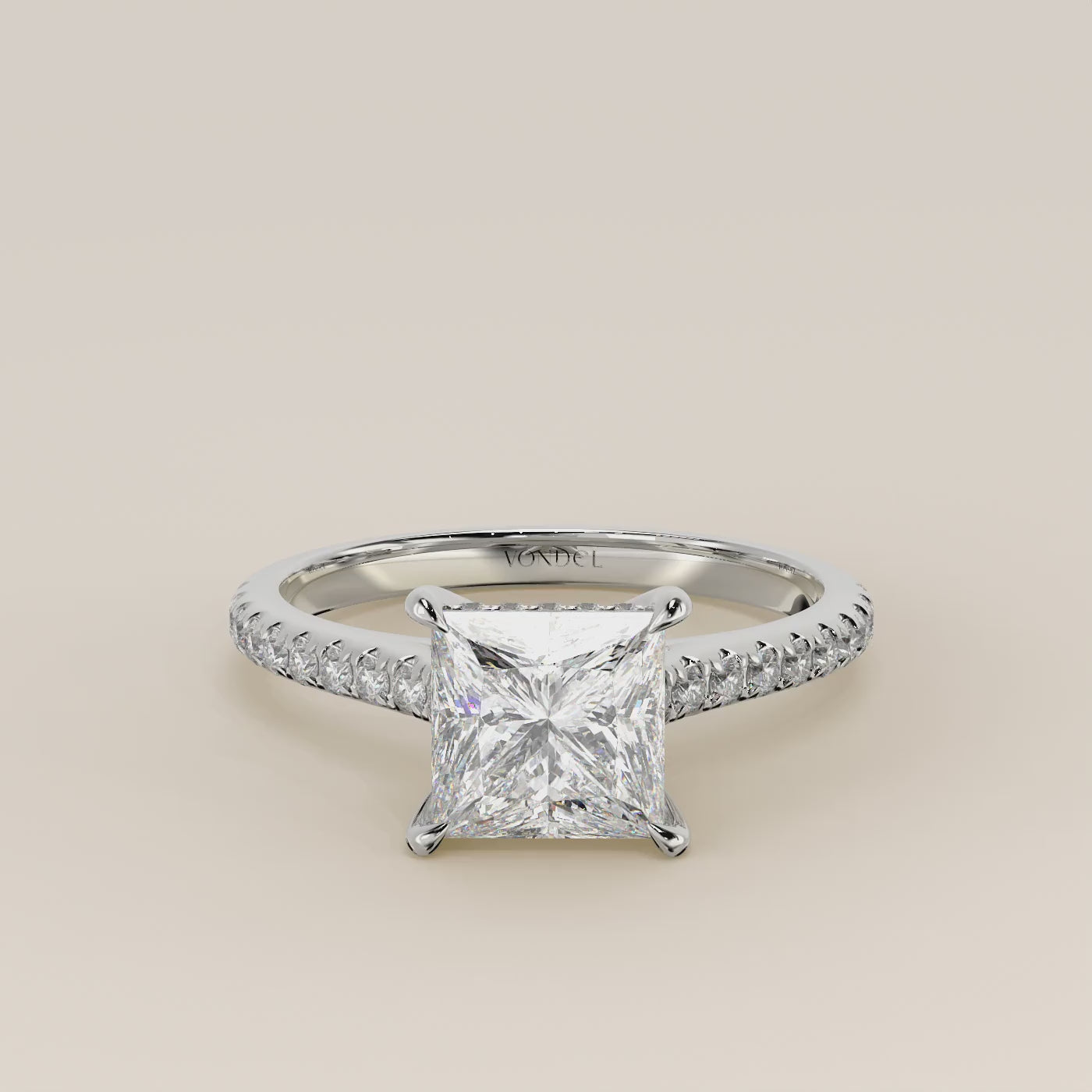 Lara - Princess Solitair Lab Grown Diamond Ring with Cathedral Setting, Pave Band and Hidden Halo