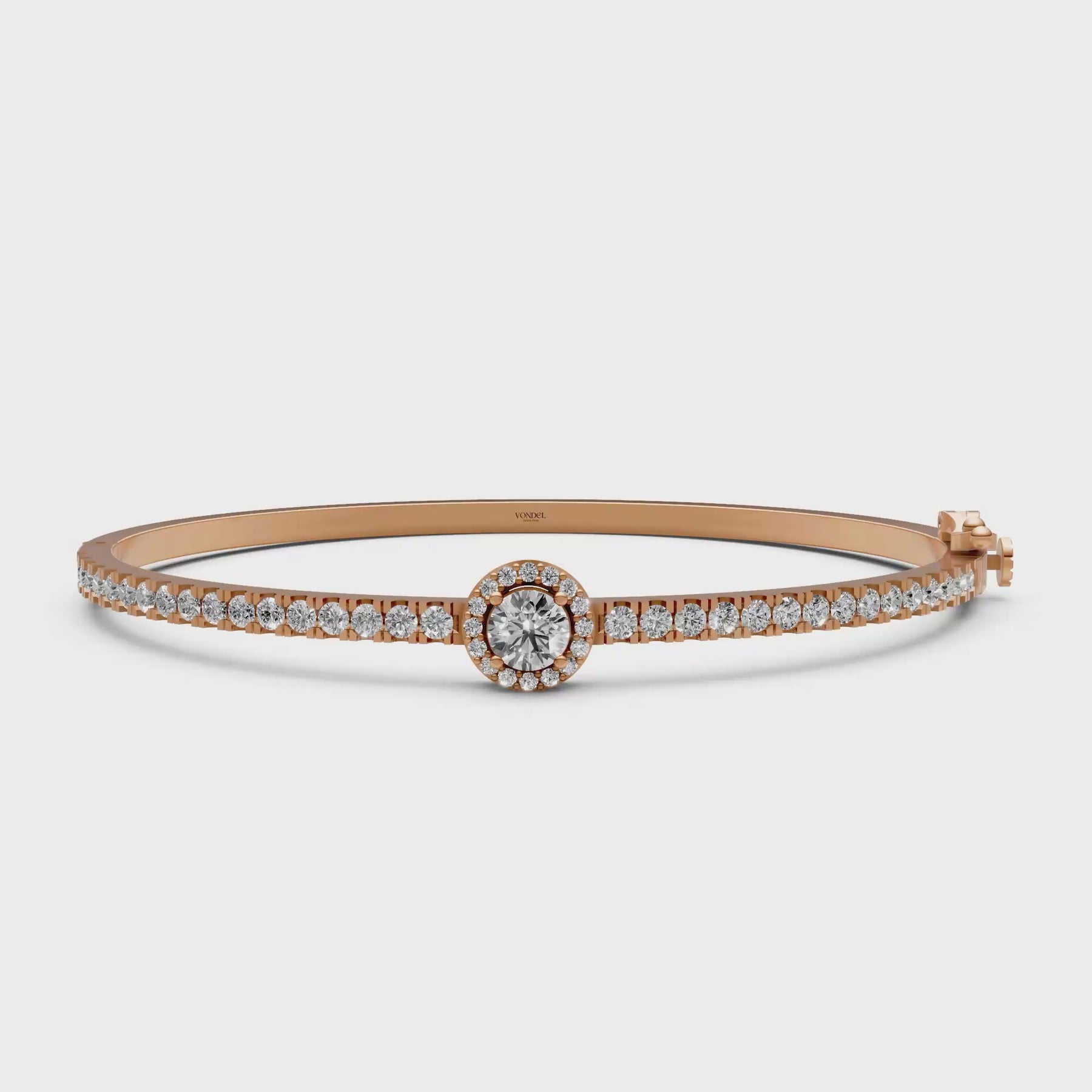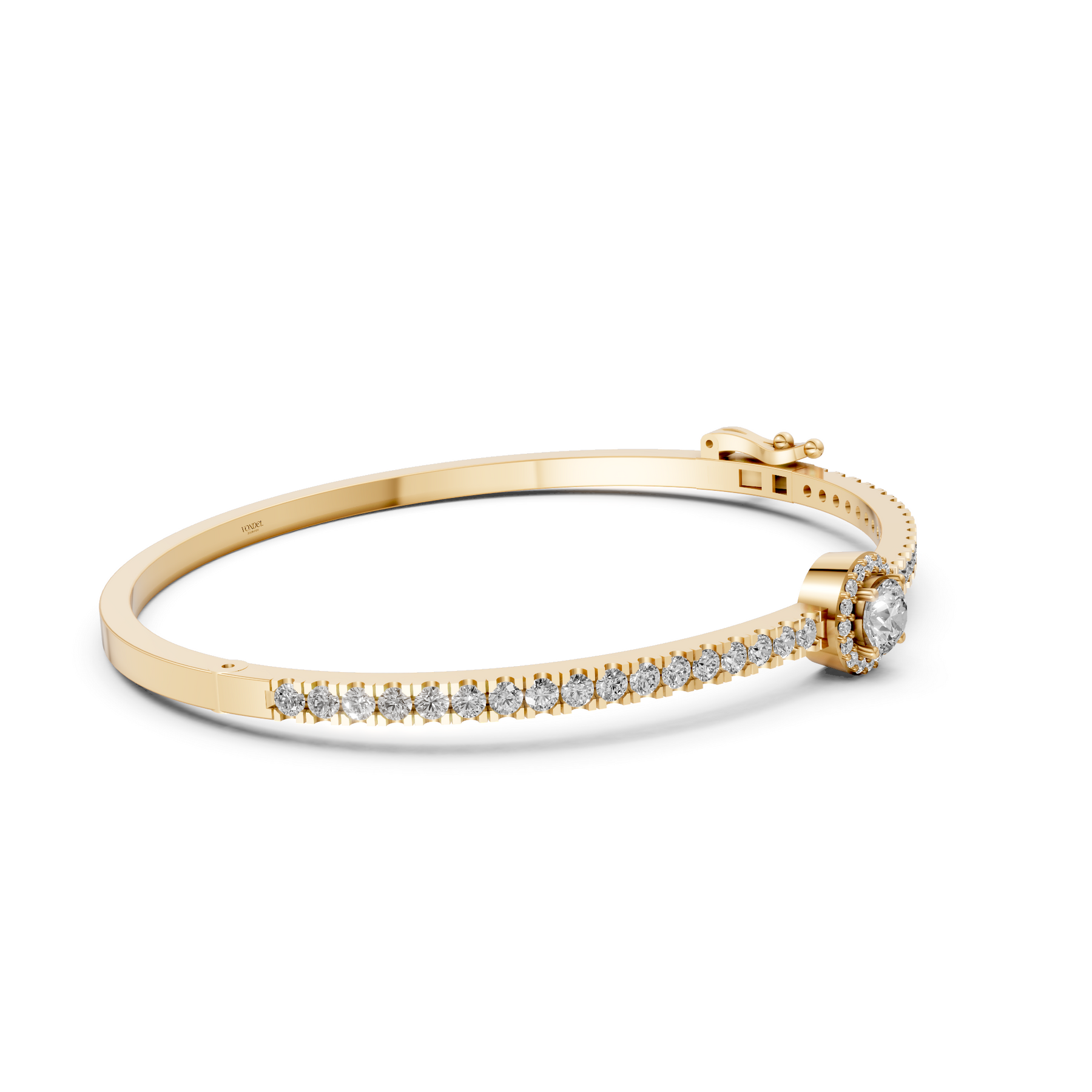 Bangle met Pave en Rond Briljant Halo - 18k Geelgoud - 1,86 ct