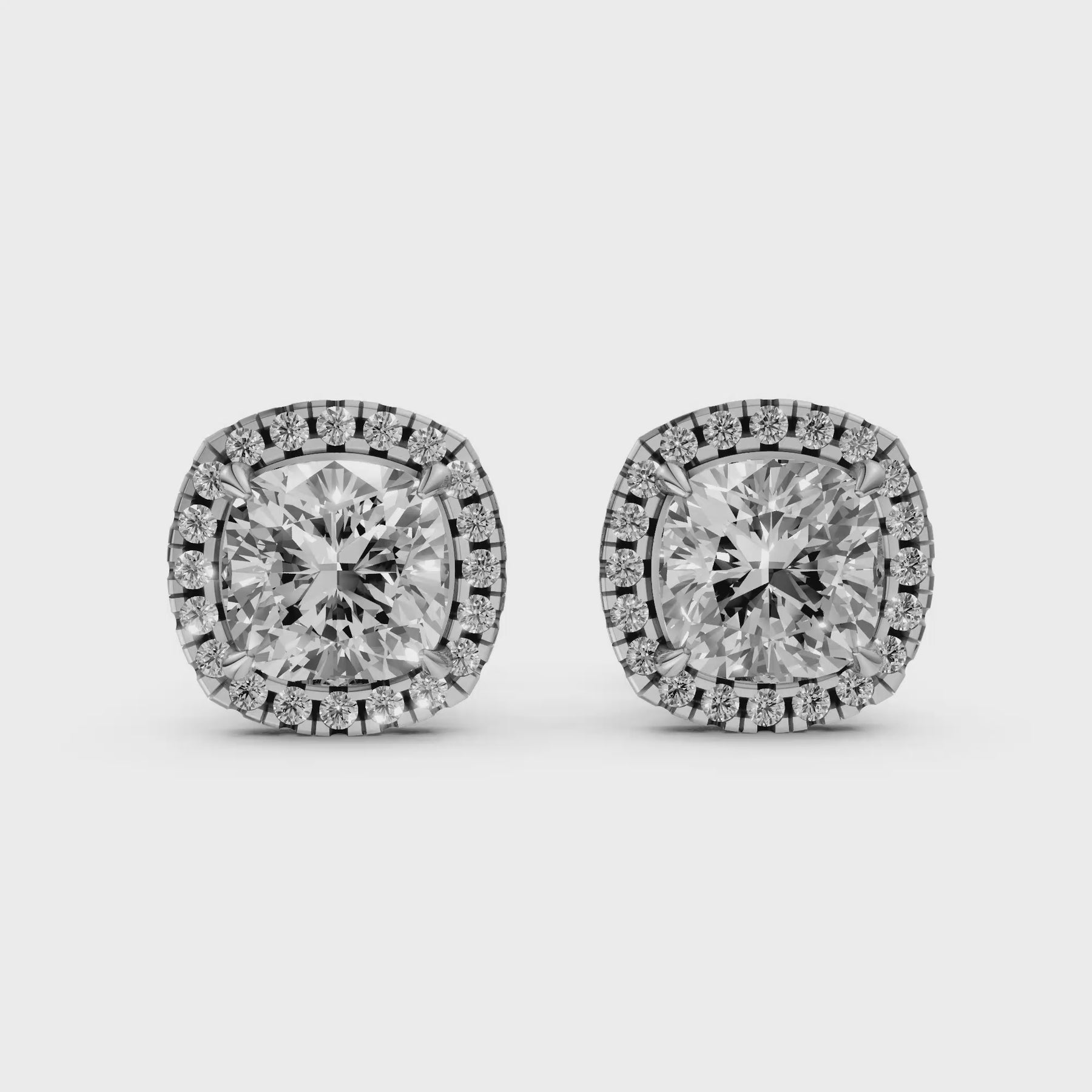 Cushion Halo Stud Oorbellen - 18K Witgoud - 2,42 ct