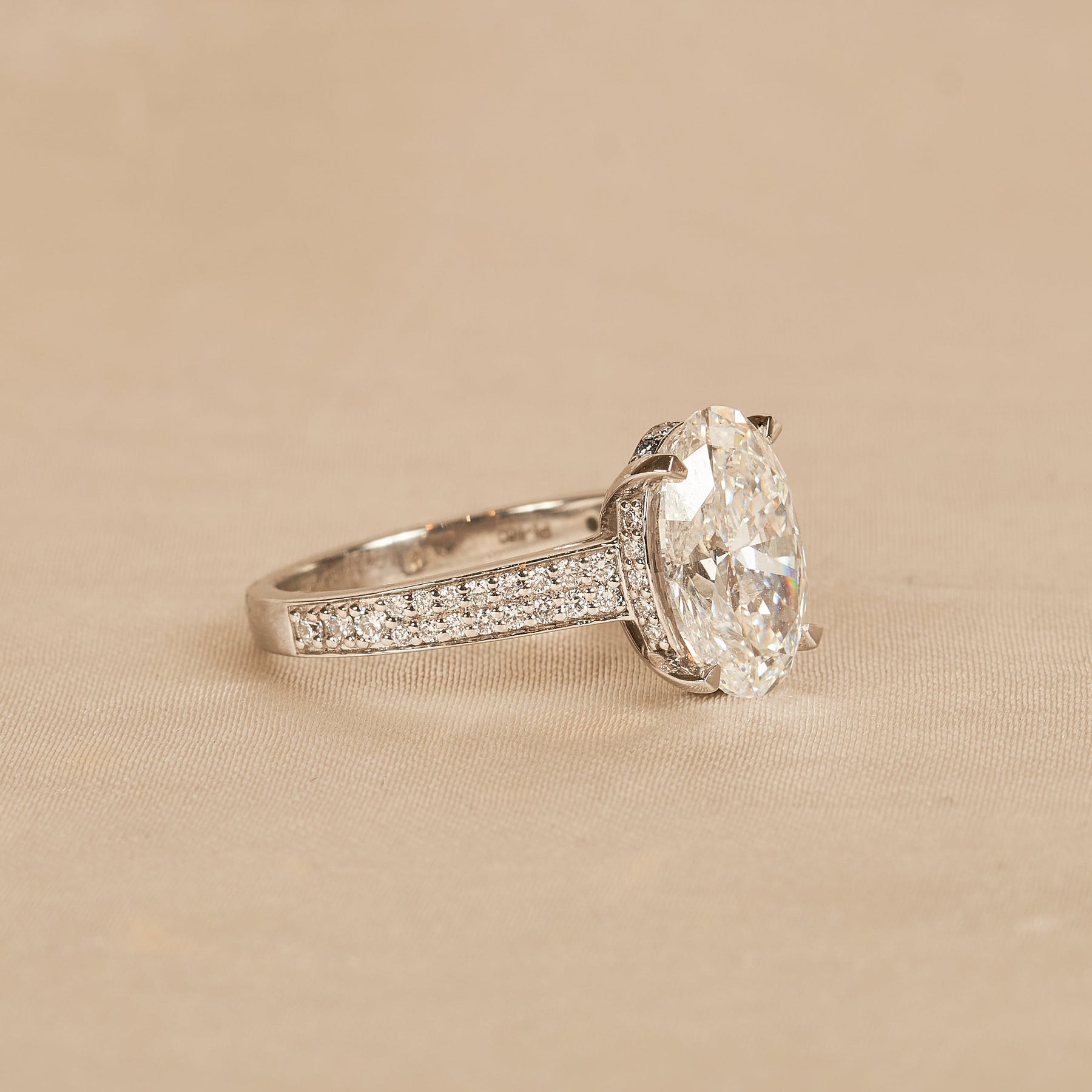 Oval Solitaire Ring met Pavé-band en Hidden Halo – 3,5 ct